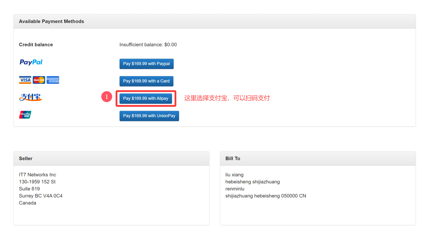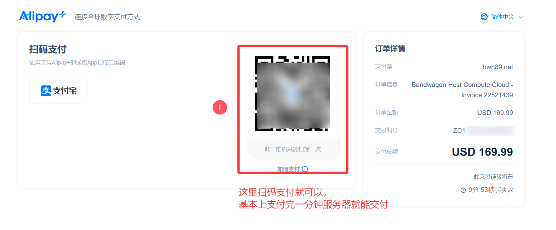 对于中国用户可以选择支付宝支付,之后会直接跳转到扫码支付。