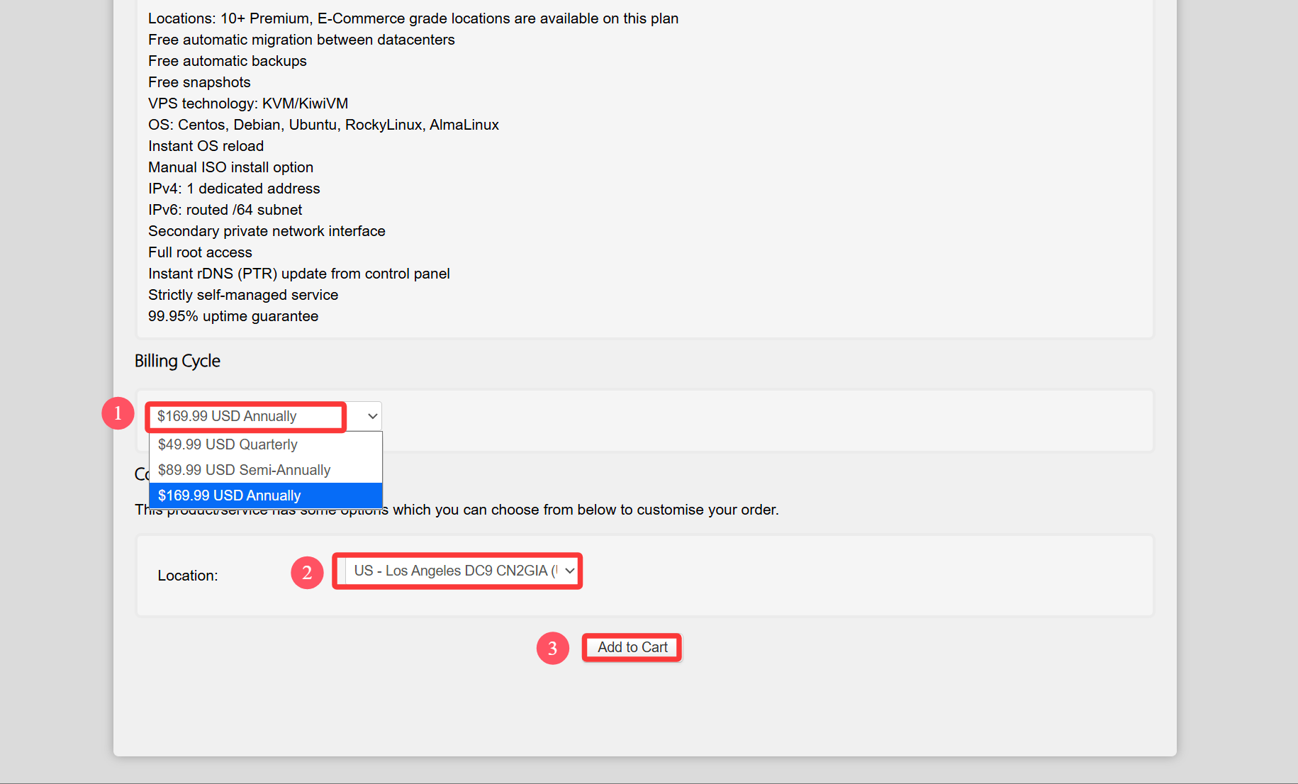 根据你选的套餐,确认好季付还是年付,以及数据中心位置(E-Commerce推荐DC和DC9,E-Commerce SLA只有一个数据中心)。